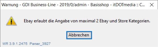 Im unteren Teil Können Sie bis zu zwei Ebay Kategorien wählen. Die Auswahl von jeweils maximal zwei Kategorien wird dabei von Ebay vorgegeben.