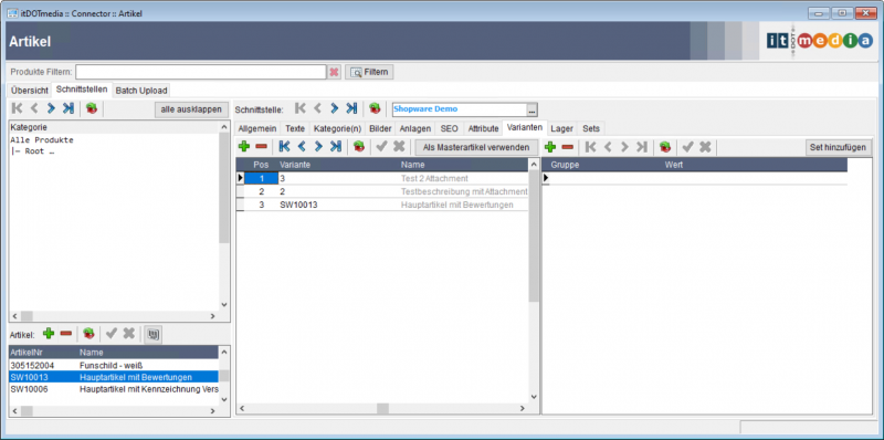 Unter dem Reiter Varianten können Sie wie bisher Artikelvarianten hinzufügen.
