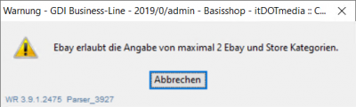 Um einen Artikel bei Ebay einzustellen werden zusätzliche Angaben für jeden Artikel benötigt. Aus diesem Grund sehen Sie einen etwas veränderten Reiter „Kategorien“ und einen neuen Reiter „Ebay“.