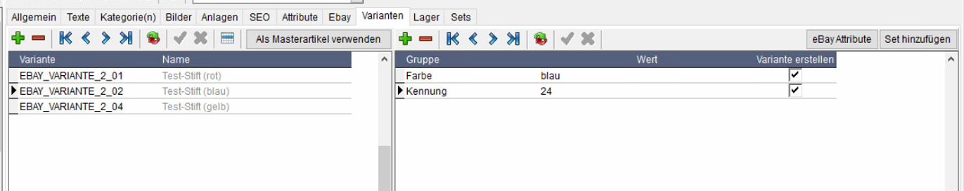 Ein Masterartikel kann nicht gleichzeitig eine Variante sein. Bei diesen Artikel ändert Sie die Ansicht zu folgender: