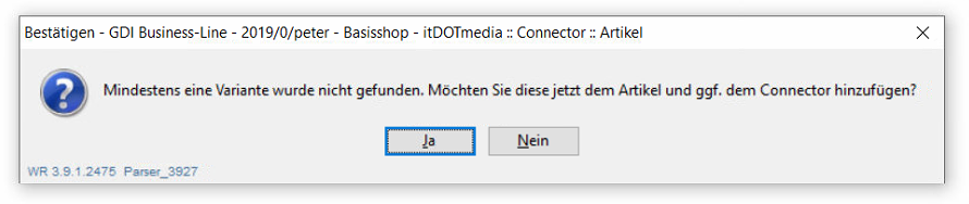 Ebenso erhalten Sie nun beim Hinzufügen neuer Varianten eine Abfrage, ob Sie diesem Artikel die benötigten Attribute hinzufügen möchten.